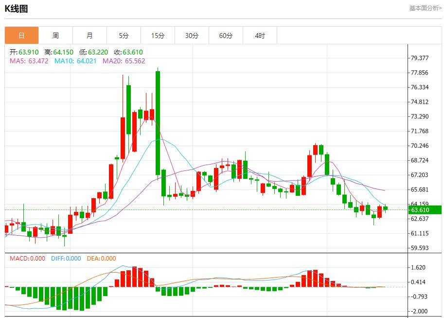 Mercato petrolifero greggio: a partire da 20:23 Tempo di Pechino, petrolio degli Stati Uniti, ora a 63,590, una goccia dello 0,53%. Prima della Borsa di New York, il prezzo (greggio) è sceso nell'ultimo trading intraday. Dopo aver raggiunto il livello di ipercomprato, ha formato una divergenza negativa sul (RSI). La pressione negativa sul suo www.rdsty.cnmercio sotto l'ema50 è continuata e la tendenza ribassista a breve termine ha dominato, rafforzando lo scenario ribassista.